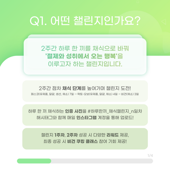 하루 한 끼 채식 챌린지는 14일 간 하루 한 끼를 채식으로 바꾸는 경험을 통해